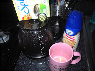 Take one part dark, caffeinated brew, to one packet sparkly sweetener and 1/4 part creamy sweetness and what do you get?